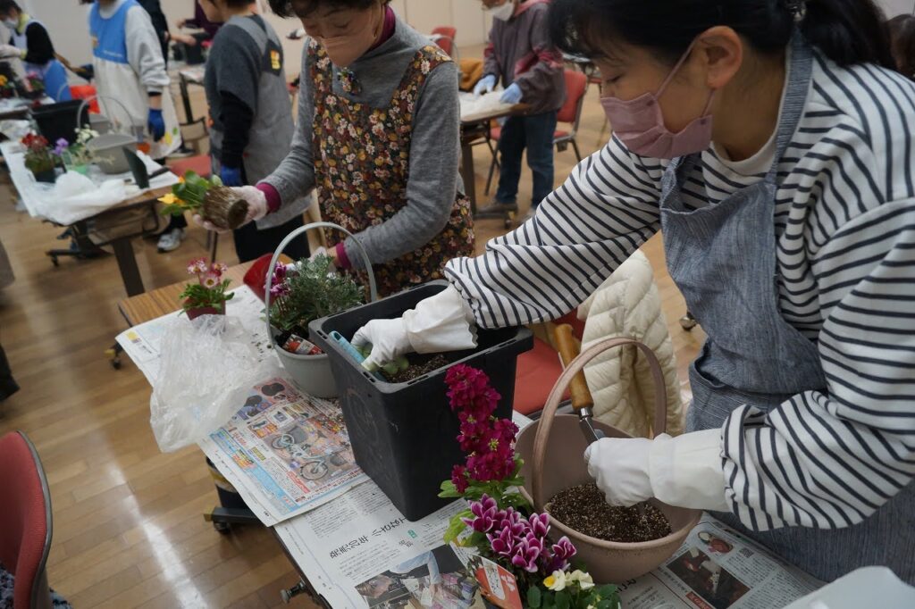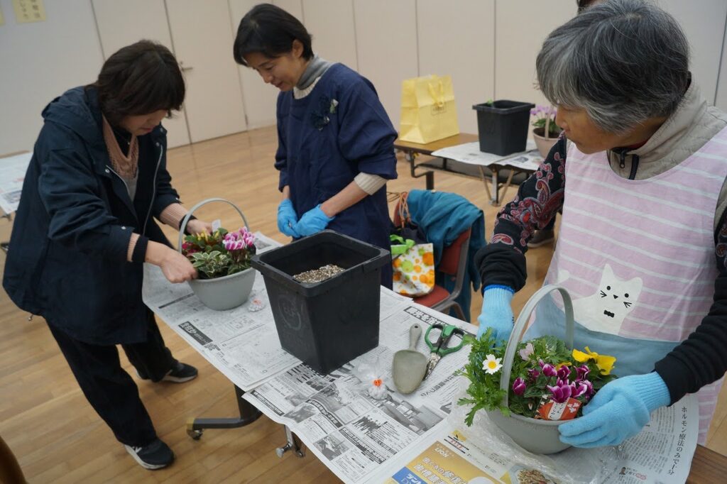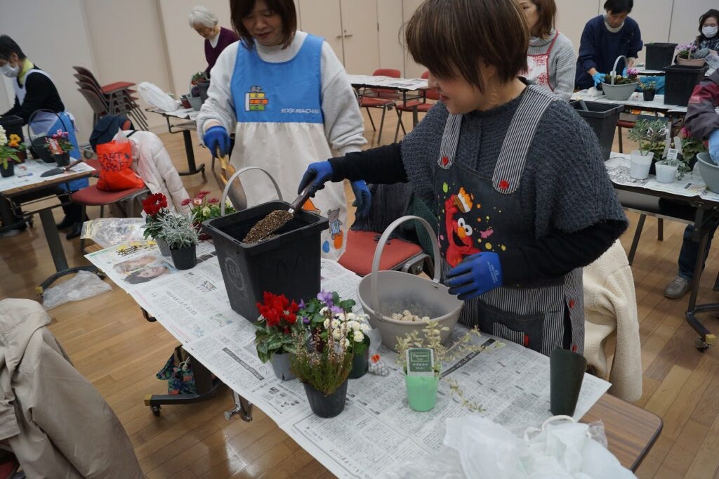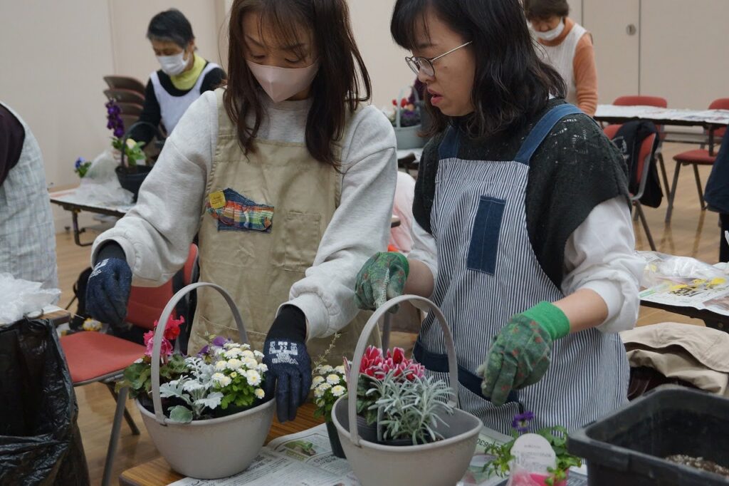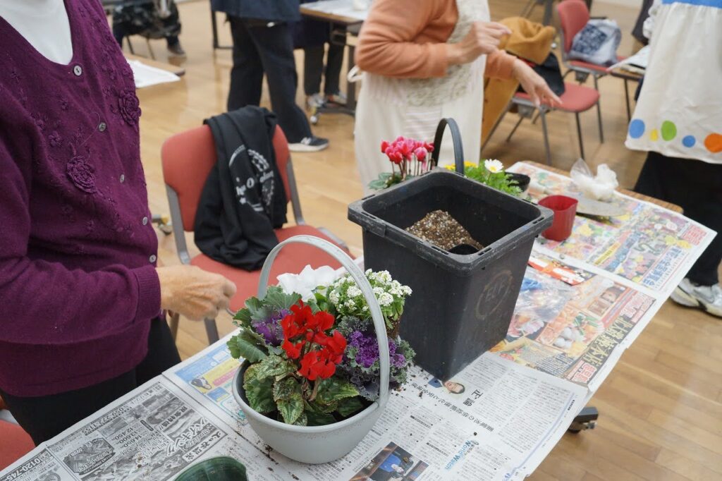12/3(水)の午前中、秋冬を彩る寄せ植え教室が加茂ふれあい会館にて行われました。