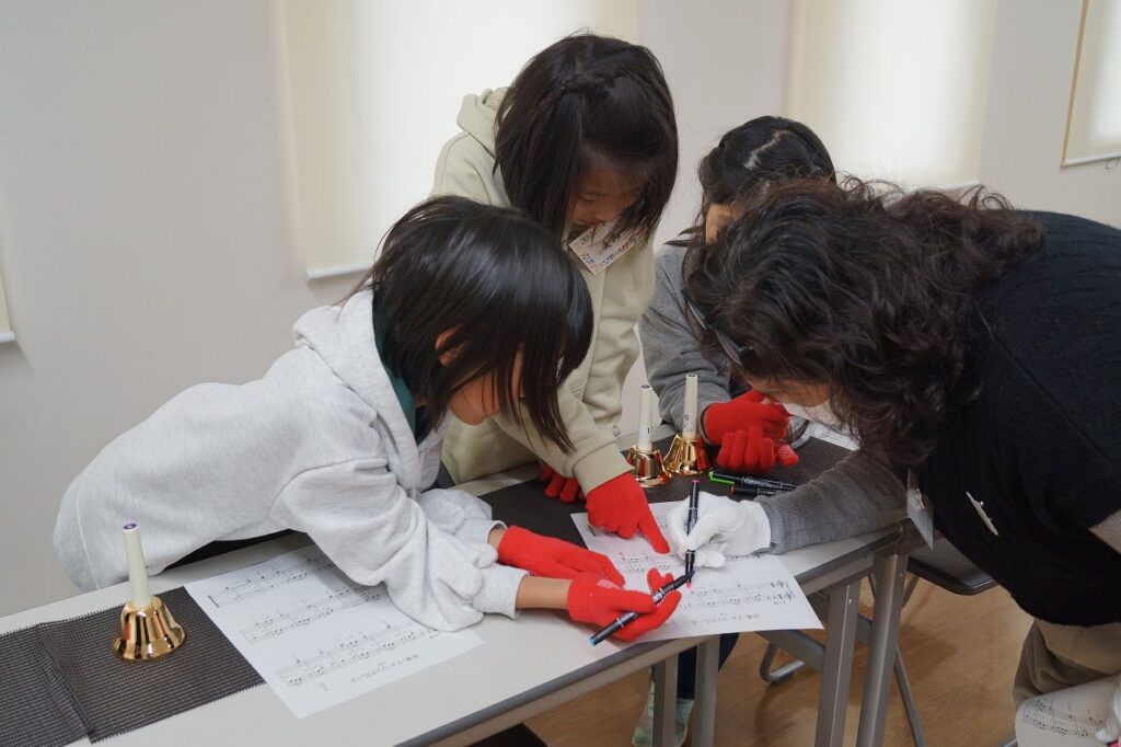 ミュージックベルは一つのベルで一つの音しか出せないので、チームワークがとても大切です。