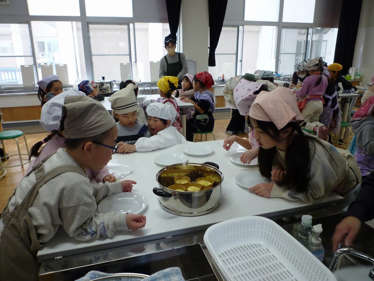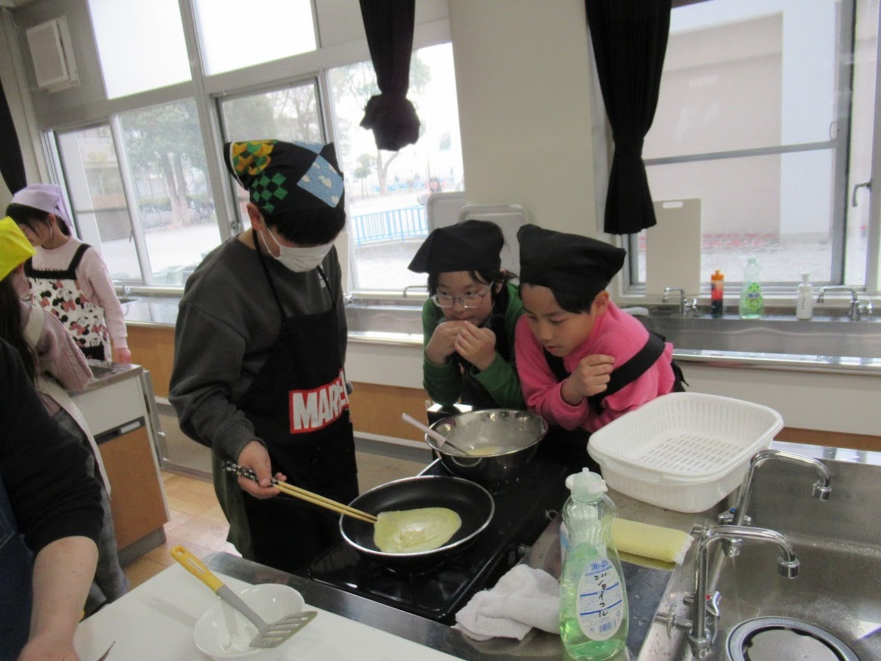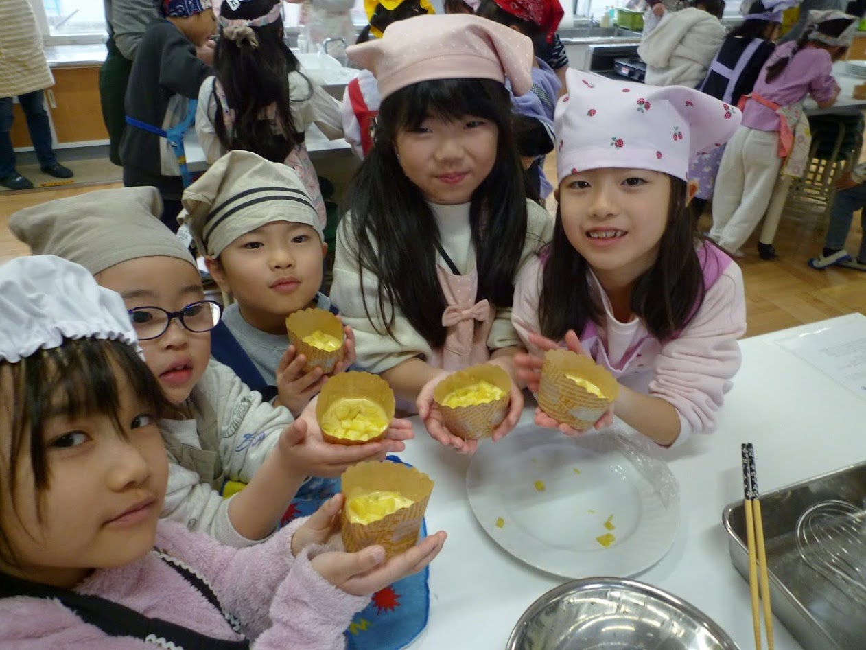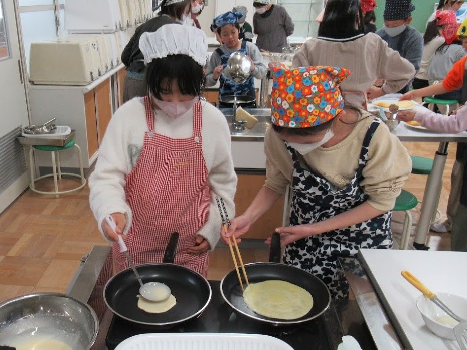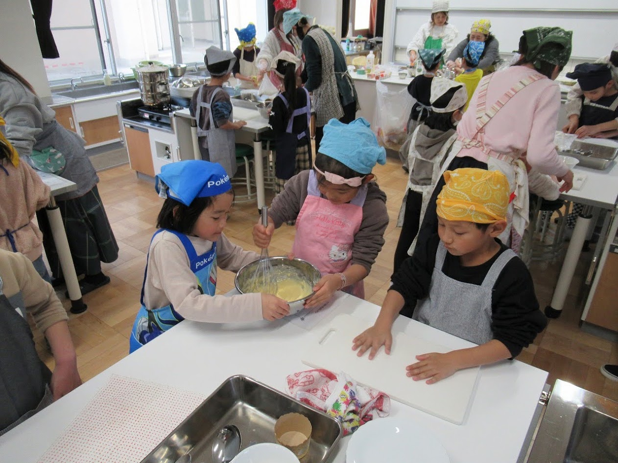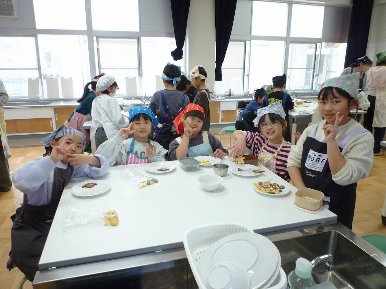 1.2年生はさつまいも蒸しケーキ、3・4年は型抜きクッキー、5・6年はクレープに挑戦しました。