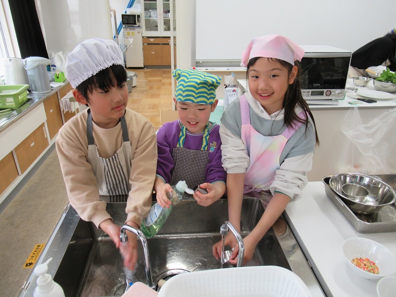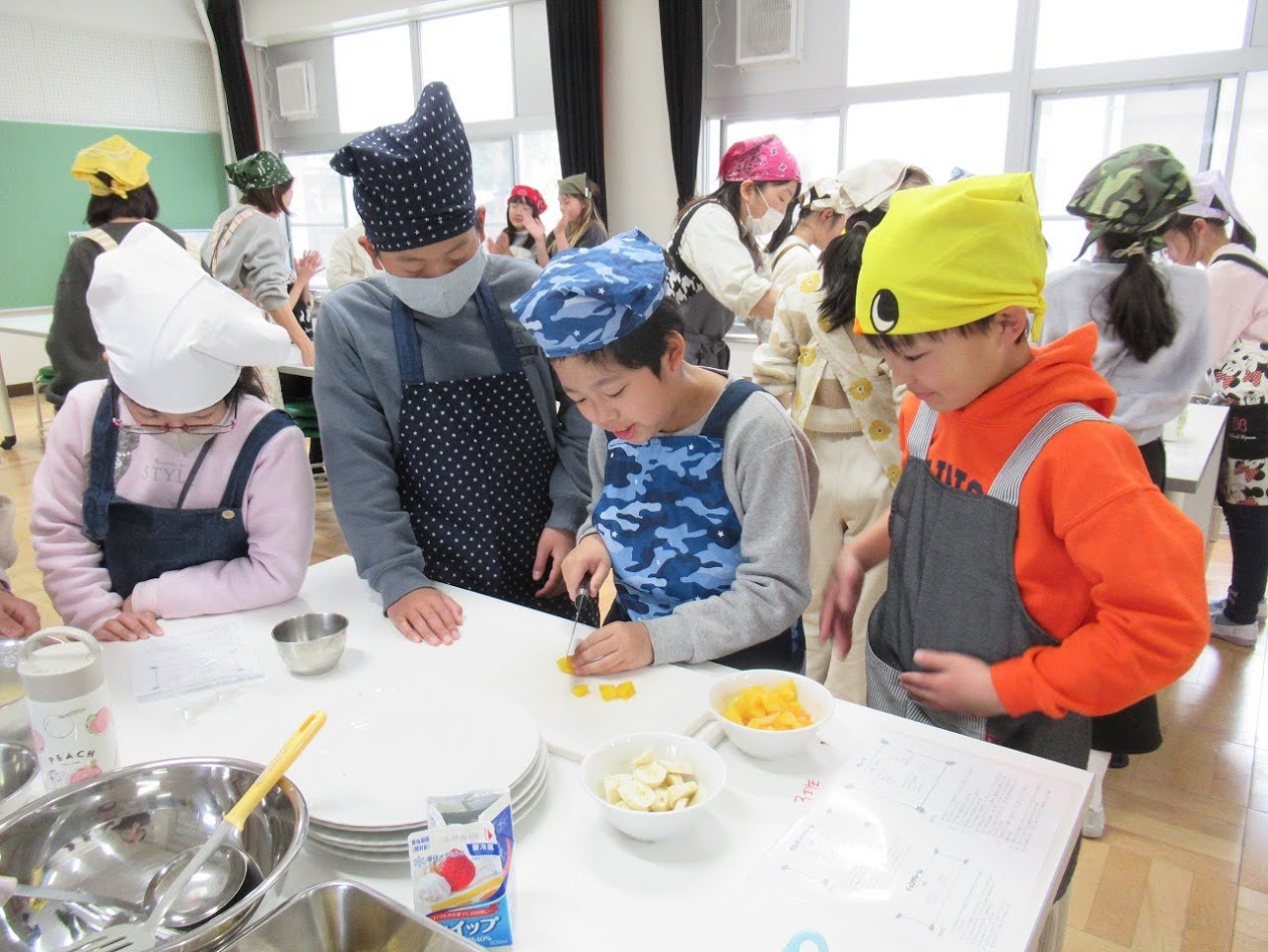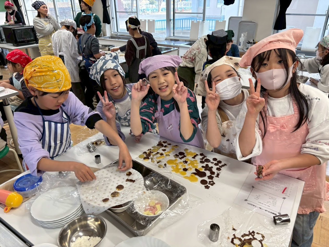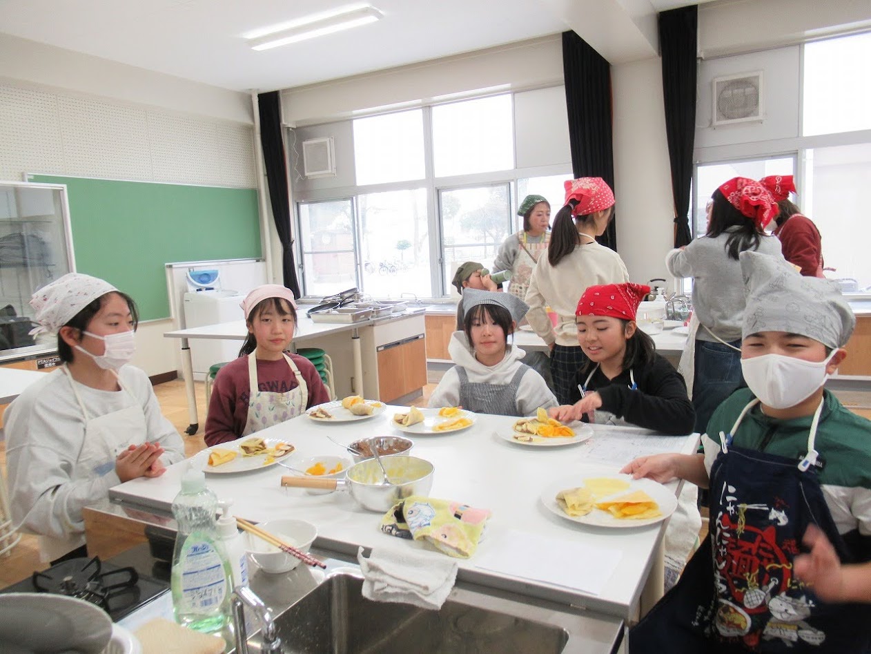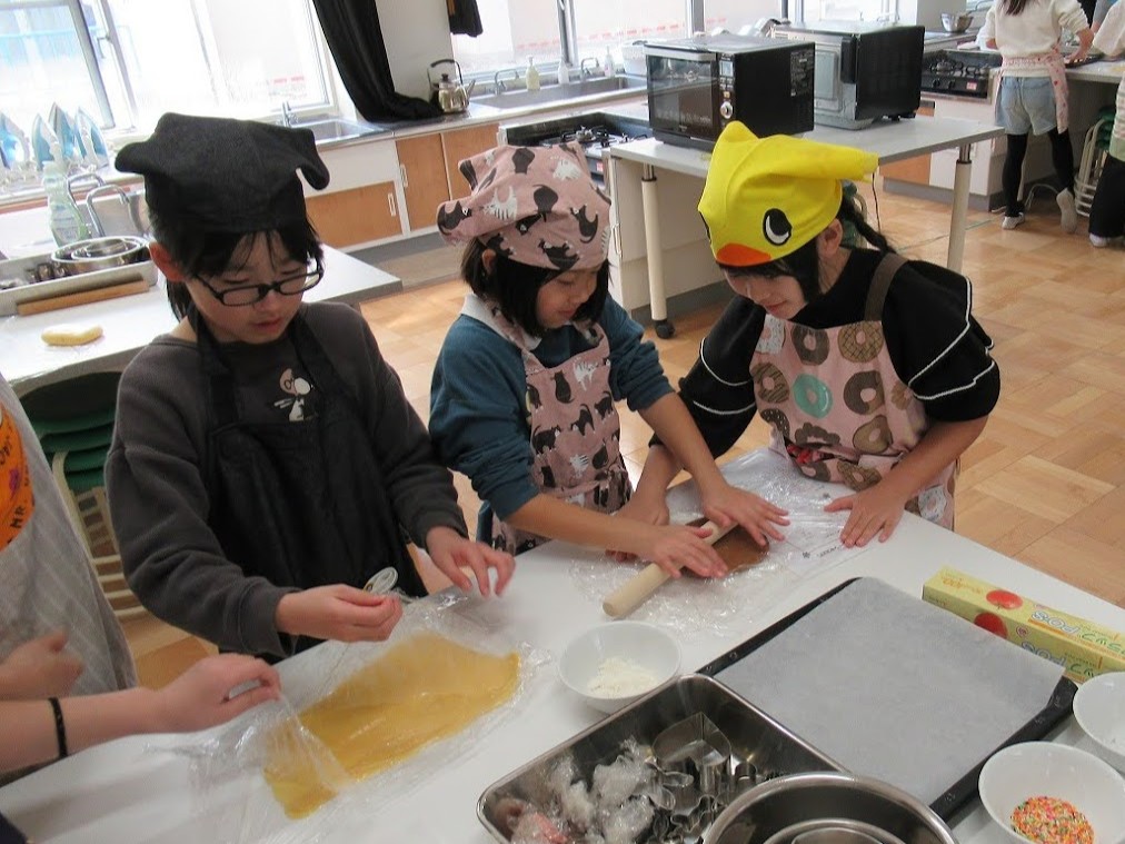 1.2年生はさつまいも蒸しケーキ、3・4年は型抜きクッキー、5・6年はクレープに挑戦しました。