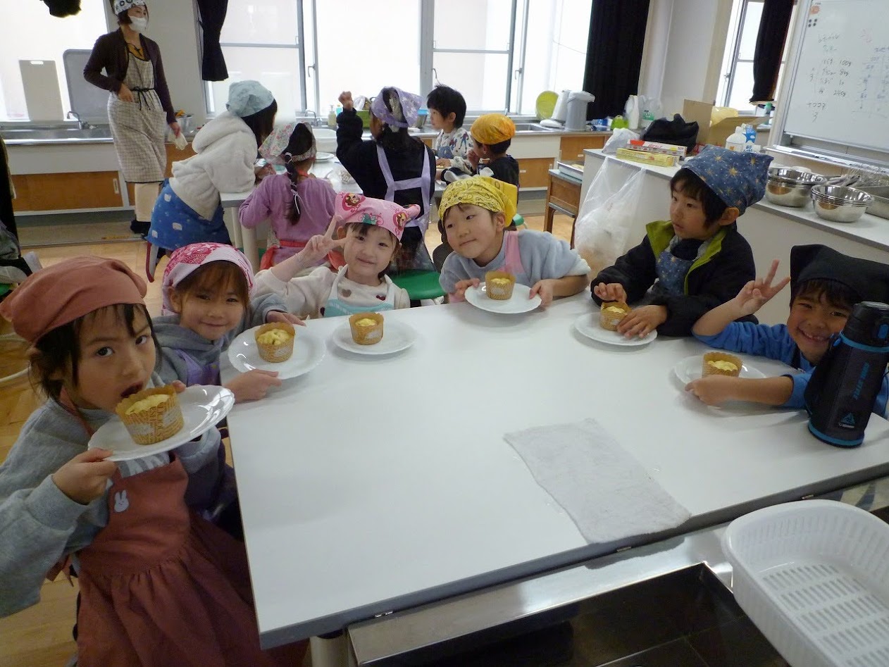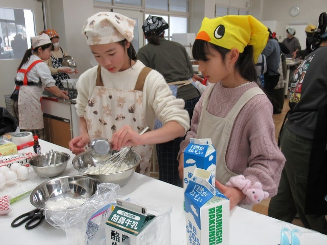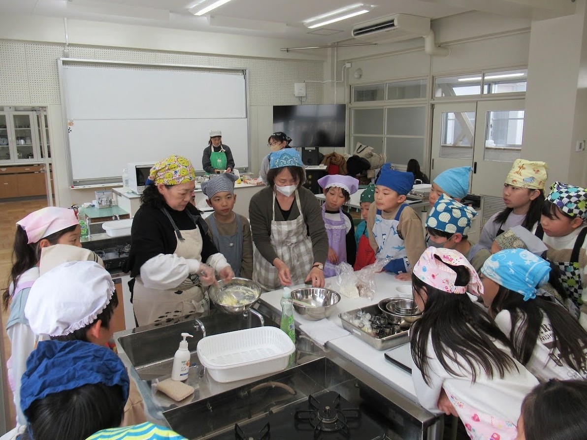 1/21(水)、28(水)、2/4(水)、13(金)、18(水)の計5日間、加茂小学校家庭科室をお借りしてジョイフルフレンド倶楽部のお菓子教室を行いました。