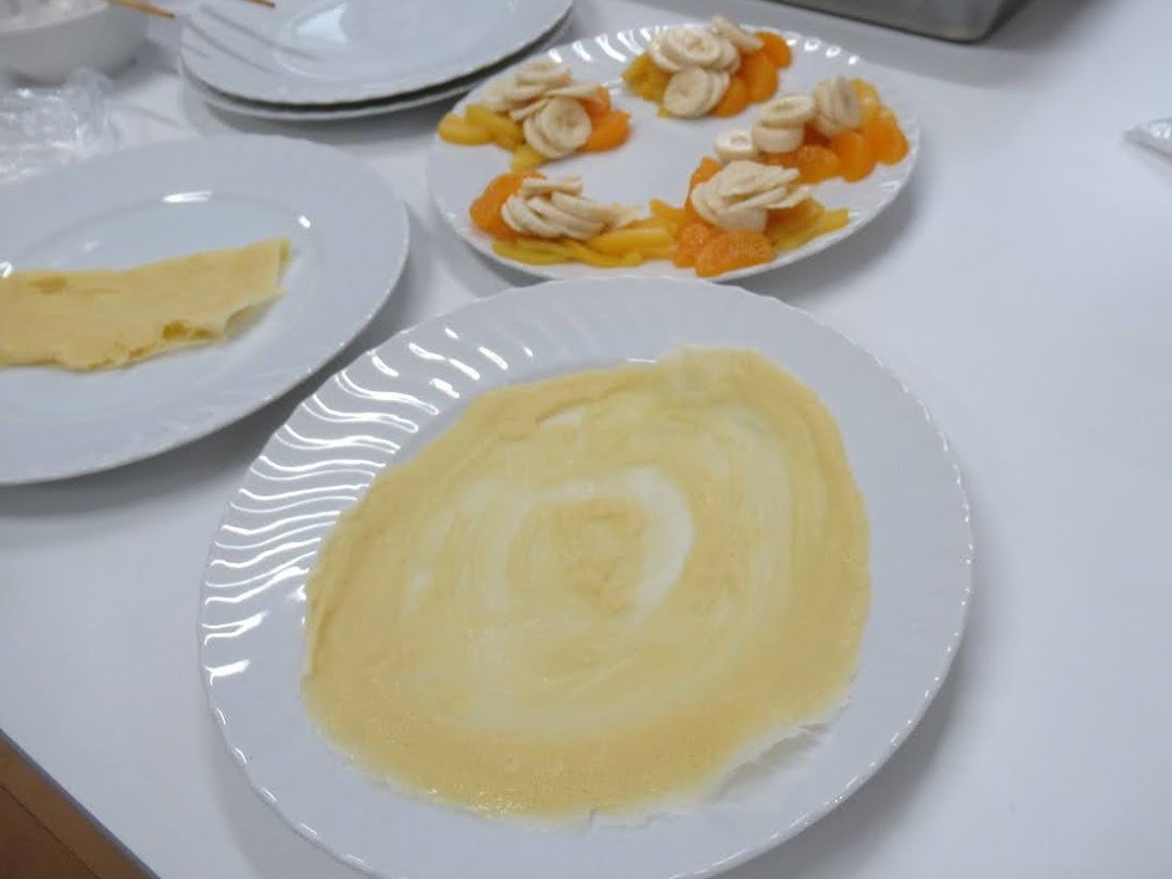 5・6年のクレープはチョコクリームとカスタードクリームを作り、クレープ生地も自分たちで焼きました。工程が多く少し大変だったかもしれませんが、みんな自分の分は自分で包んでおいしそうに食べていました。