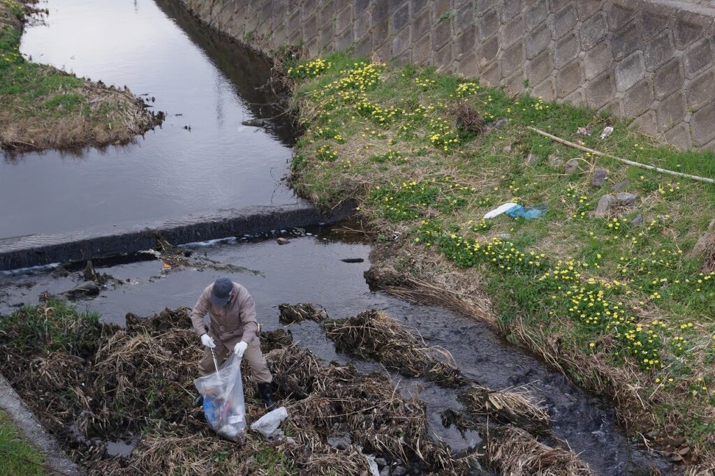3/7(土)環境部、コミュニティ運営委員、地域有志合わせて30名ほどでコミュニティ内を流れる最明寺川ぞいのゴミ拾いをしました。