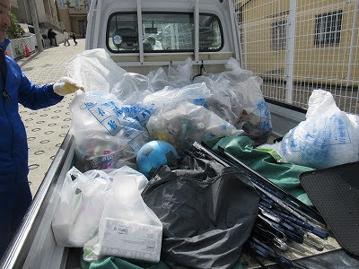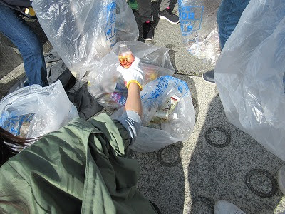 拾ったゴミを分別するのがまた一苦労で、濡れているゴミを仕分けるのは大変でした。